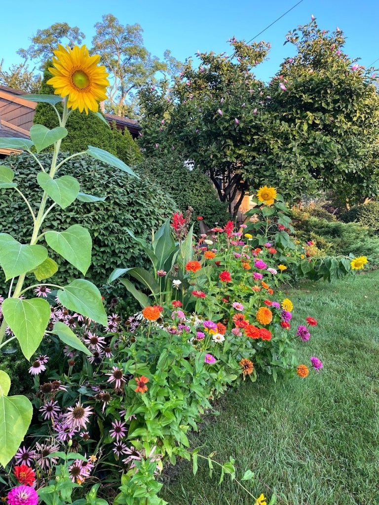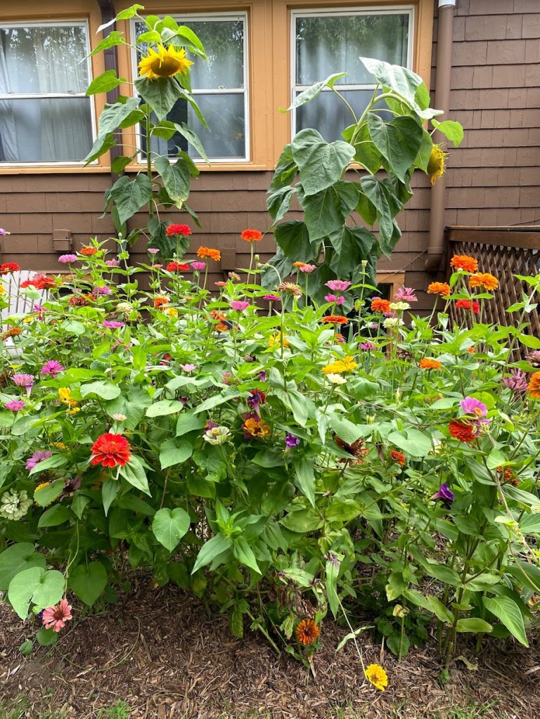 In May of 2020, I sadly realized that because of Covid and my isolation I would not be making my annual trip to the flower nursery. I adore flower gardens. I sat at my computer and ordered flower seeds on Amazon Prime. So strange. It was all so strange. I ordered zinnia seeds. By the end of summer in 2020, I had a new title in the neighborhood and on social media. I was now called the Zinnia Queen because my yard exploded with these flowers in every inch of soil available to them.