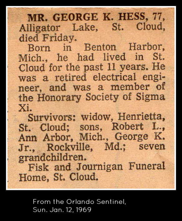 George K. Hess death notice