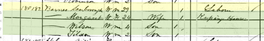 It was helpful to see the 1880 US Census. Here, our Samuel Tilden (Chris’ great grandfather) is listed simply as “Tildon”. Note that Wilson and Tildon are listed as the children of Maggie in this census. So, this is good for the case that they were brothers…right? If they were brothers, how amazing that they are only 5 months apart! Is that possible?