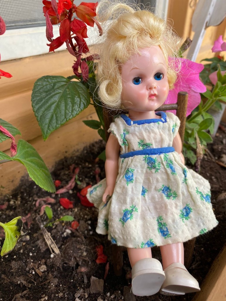 I was born in Ann Arbor, MI in 1954. My childhood dolls have always been precious possessions for me. I have kept my dolls for all of these years, because they offered me lovely memories of a cherished time in my life. I have lots of happy memories of playing with my dolls in the attic or basement play spaces of my family homes. Playing dolls was an activity that helped expand my imagination. My dolls went to pretend parties, overnights, the theater, tea parties, and endless fashion shows. It was a time to just make believe. Even after all these years, I remember each of my dolls and each of their many outfits. My daughter also played with many of my dolls and that delighted me too.