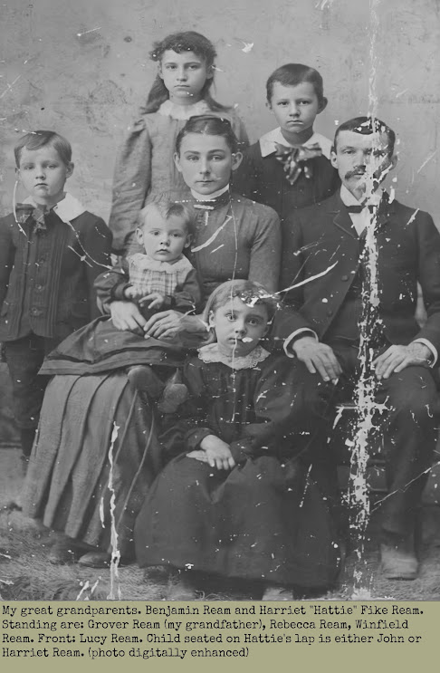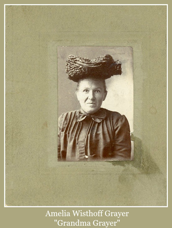 Juan James Hess 1850-1929 – A paternal great grandfatherPhoto of Dorothy (Dora) Bishop Hess 1857-1904 and Juan James Hess 1850-1929 – paternal great grandparentsHenry David Joseph Spruhan 1857-1939 – A paternal great grandfatherCaroline “Rosie” Baur Spruhan 1863-1942 – A paternal great grandmotherAugust Friedrick Krüger Grayer – 1849-1917 and Emilie “Amelia” Louise Wisthoff Grayer “Grandma Grayer” 1861-1955 – maternal great grandparentsEmilie “Amelia” Louise Wisthoff Grayer “Grandma Grayer” – A maternal great grandmother 1861-1955Benjamin Ream – A maternal great grandfather 1855-1928 and Harriet “Hattie” Fike Ream- maternal great grandparentsHarriet “Hattie” Fike Ream 1863-1926- A maternal great grandmother