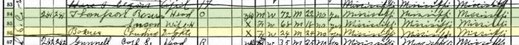 1910    US census shows Eugene is living with his mother Mittie and her brother Arthur and his sister Hilma on Pearl Street in Columbia City, Mississippi