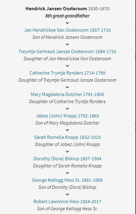 Hendrick Jansen Oosteroom was my 8th great grandfather. Here is how we relate: