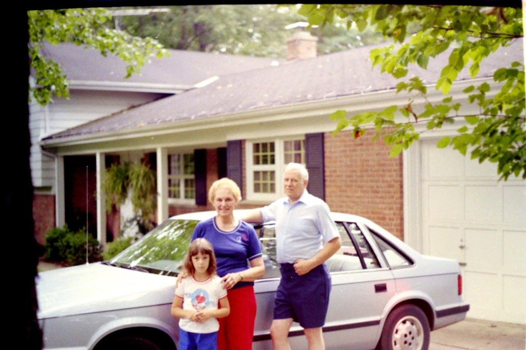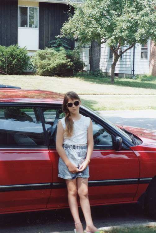 This photo of Amy was taken in front of the house at 609 S. 1st Street, Ann Arbor, MI. This was our red Subaru.