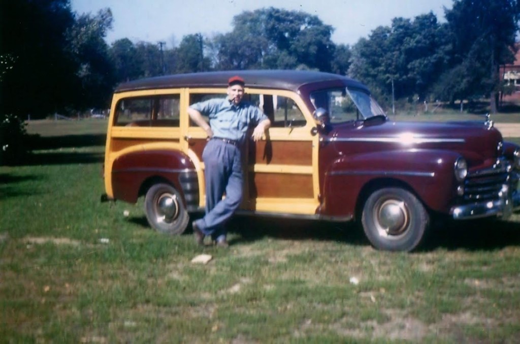 Gene standing by their convertible. The file location for this photo is in the shared folder Family of Gene and Joann Wiesner.