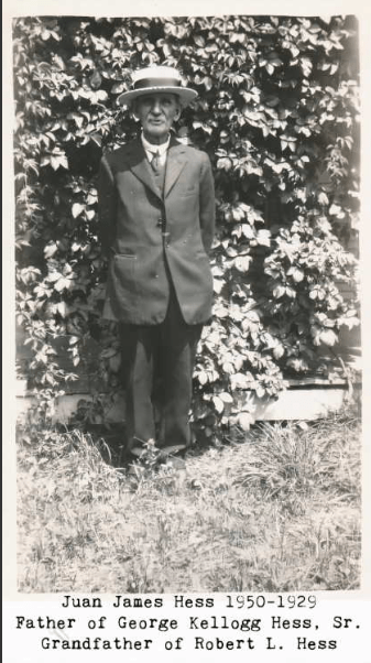 Juan James Hess – my Great Grandfather- the husband of Dora Bishop. He was born 173 years ago on 12 May 1850. He passed away at the age of 78. https://www.findagrave.com/memorial/95816609/juan-james-hess